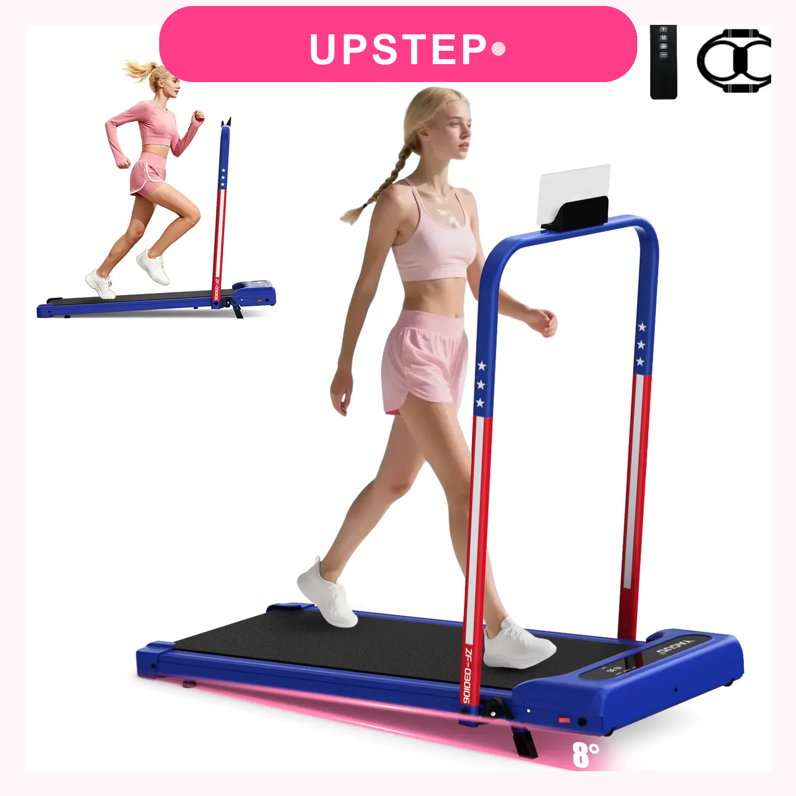 The quiet, foldable walking pad built for apartments, offices, and shared homes. 265 lb capacity, 8° adjustable incline, a remote you won't lose, and a 10-minute setup. Every step counts.